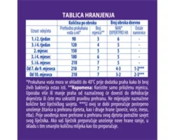 Jednu mjericu otopite u 30 ml vode. Dnevnu količinu hrane i broj obroka prilagodite djetetovoj starosti i njegovim potrebama. Ako ljekar ne savjetuje drugačije, uvažavajte preporuke u tabeli.